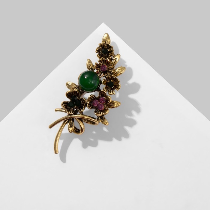 Брошь «Букет» с турмалином, цветная в чернёном золоте