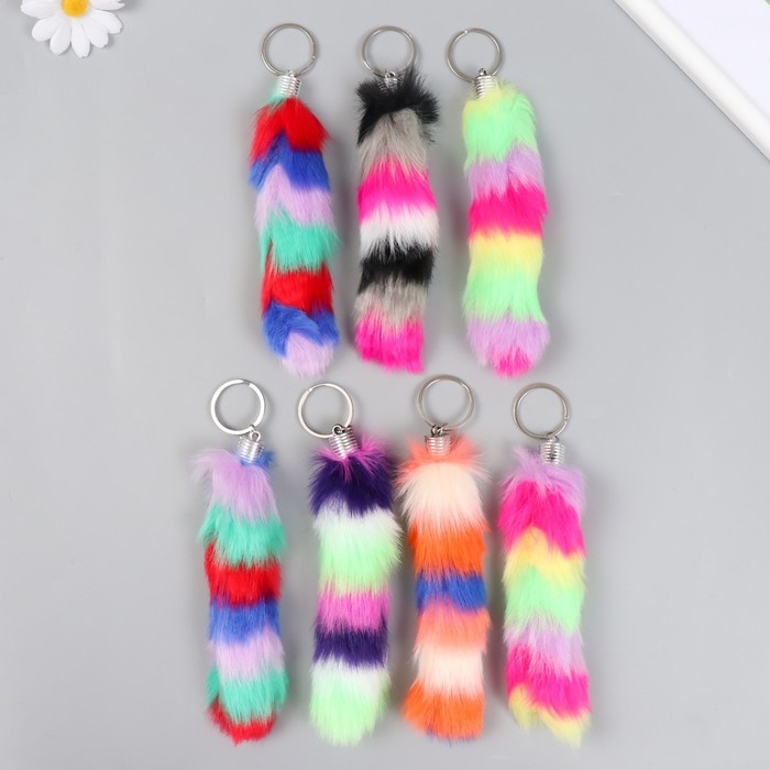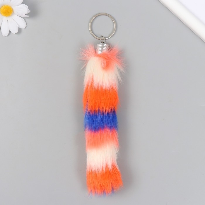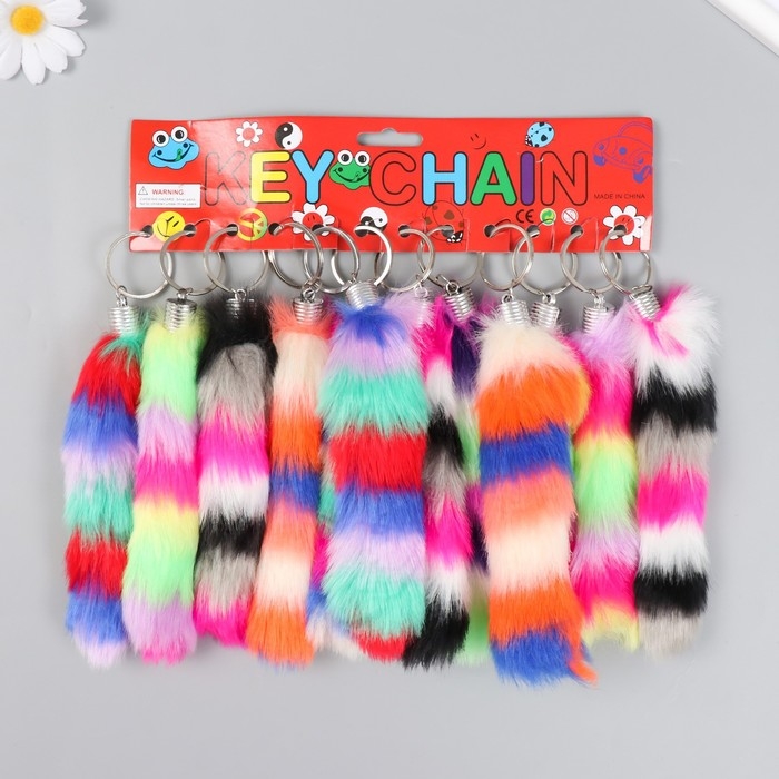 Пушистик на кольце "Хвост разноцветные полоски" МИКС h=15 см