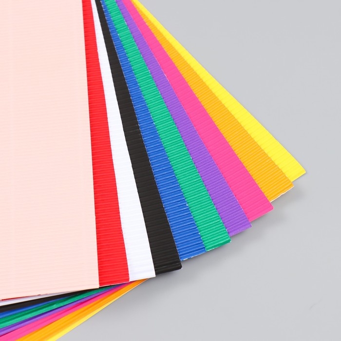 Картон гофрированный "Цветной" набор 10 листов МИКС формат А4