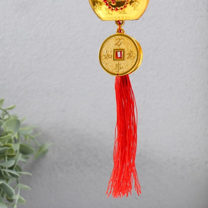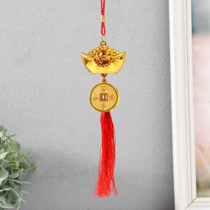 Подвеска пластик "Золотой слиток - иероглиф Богатство" 37 см