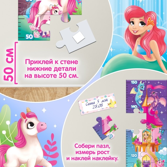 Пазл-ростомер «Друзья принцессы», с наклейками