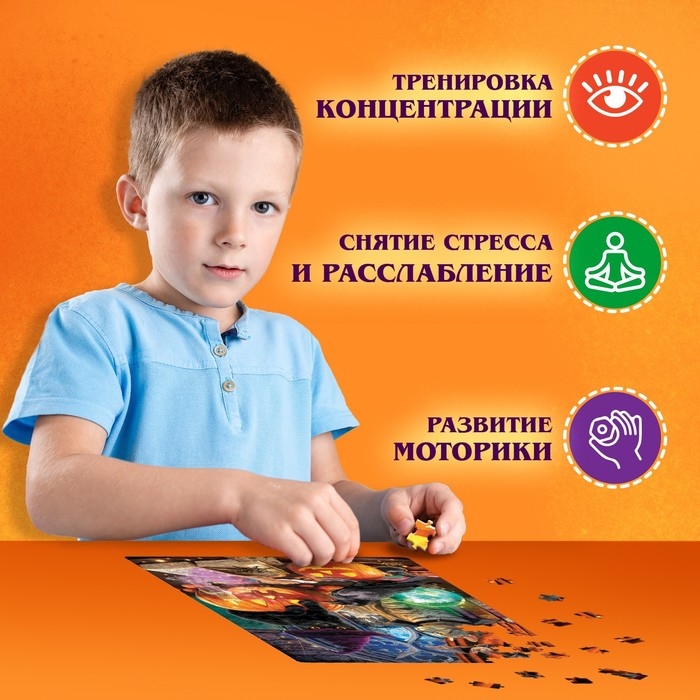 Ребёнок соберёт все 260 деталей в одно целое и получит красочную картинку размером 33 × 23,7 см.