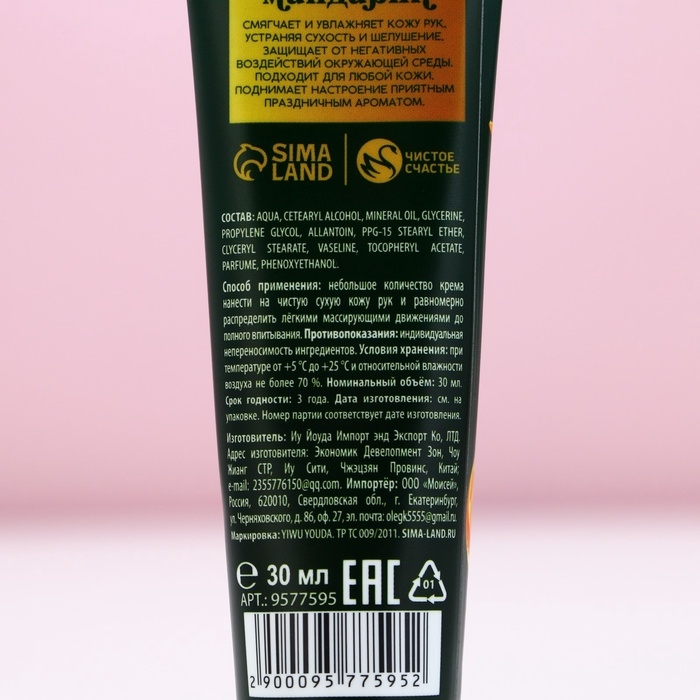 Крем для рук «Тепла и уюта!», 30 мл, аромат мандарина, Новый Год