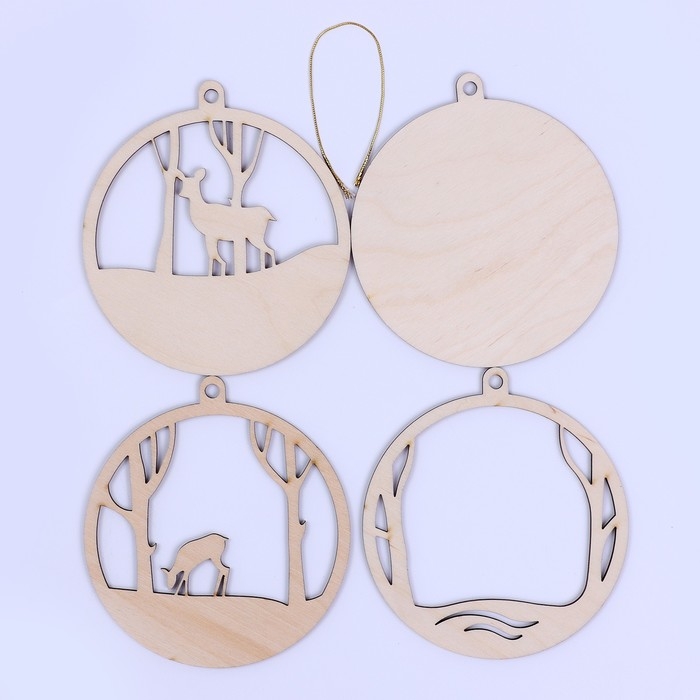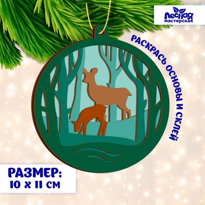 Заготовки для творчества. Деревянная ёлочная подвеска «Новый год! Олени в лесу»