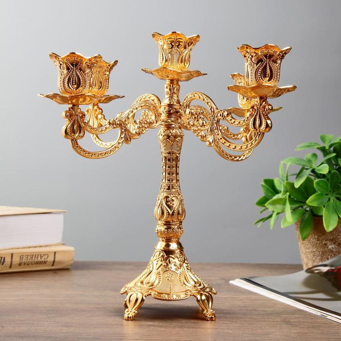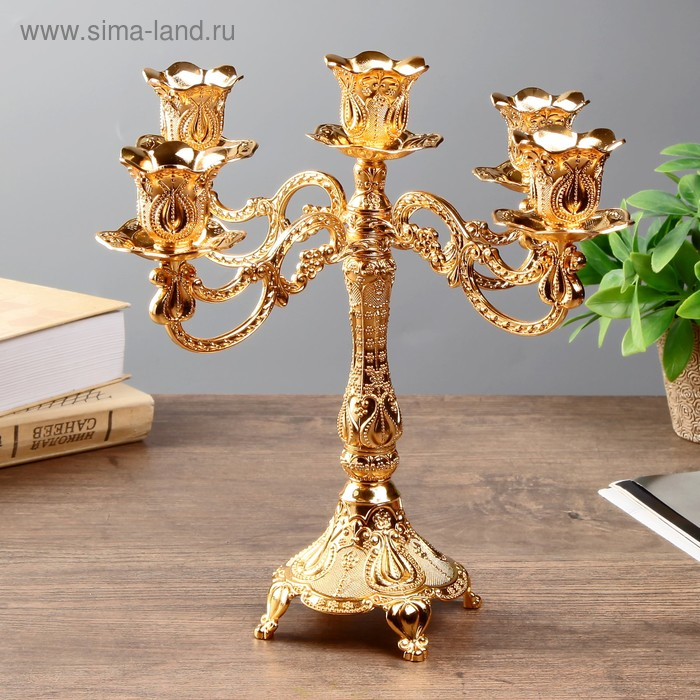 Подсвечник металл на 5 свечей "Узорный" цвет золото 28х26х26 см
