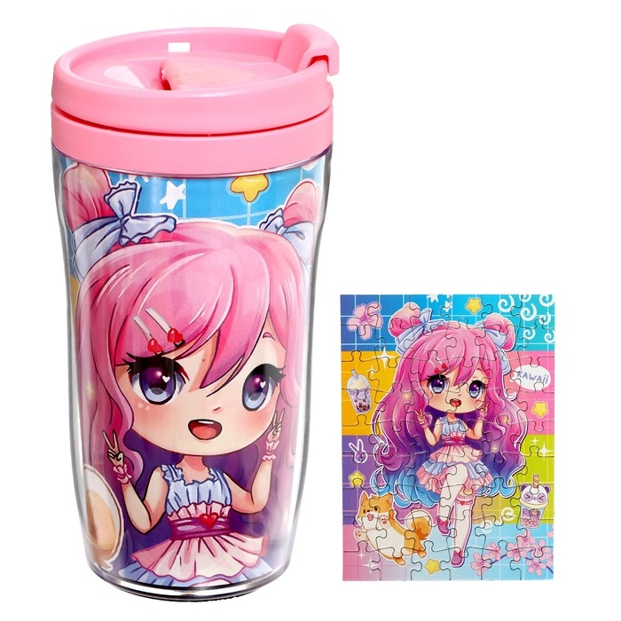 Термостакан с пазлом «Кавайная девчонка», 54 элемента, 250 мл