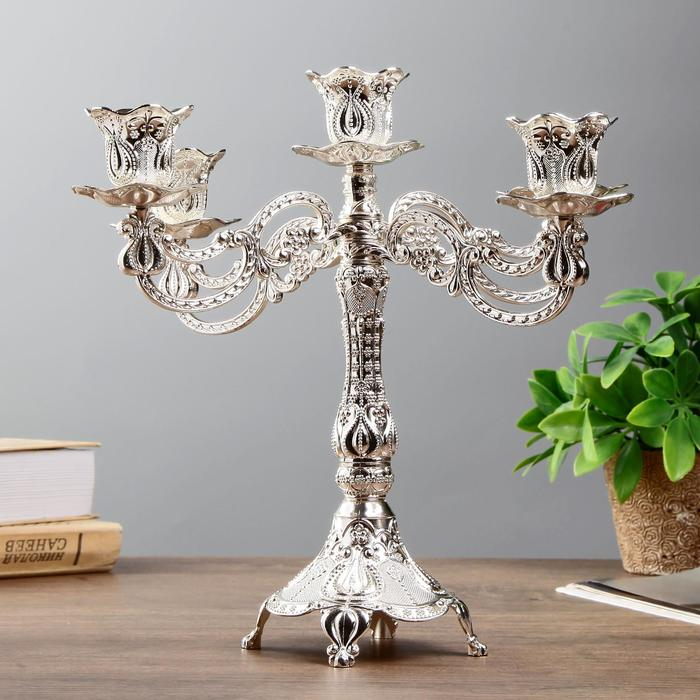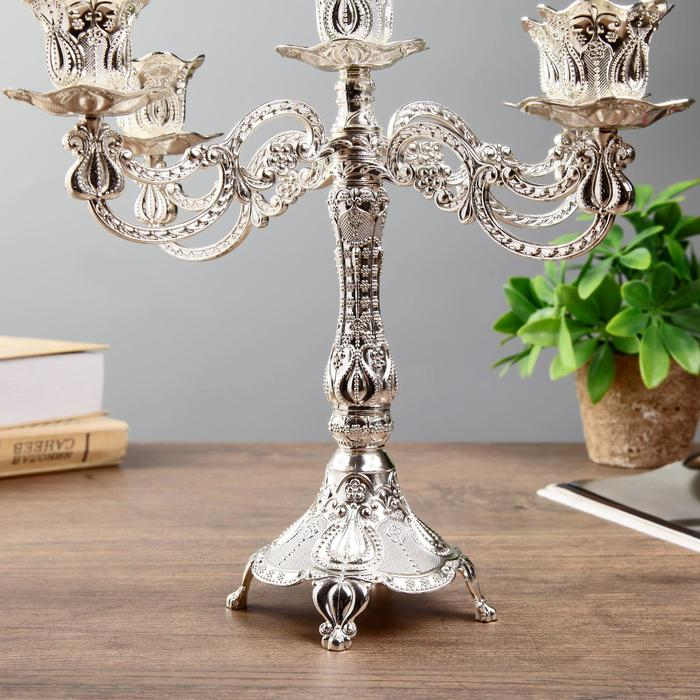 Подсвечник металл на 5 свечей "Узорный" цвет серебро 28х26х26 см