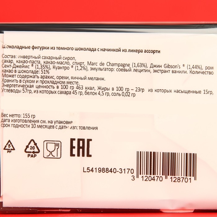 Новый год. Шоколад фигурный SELECT by ABTEY, с алкогольной начинкой, ассорти, 13 ± 1 г