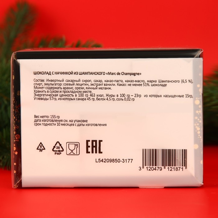 Новый год. Шоколад фигурный SO FRENCH, с начинкой из шампанского "Marc de Champagne", 13 ± 1 г