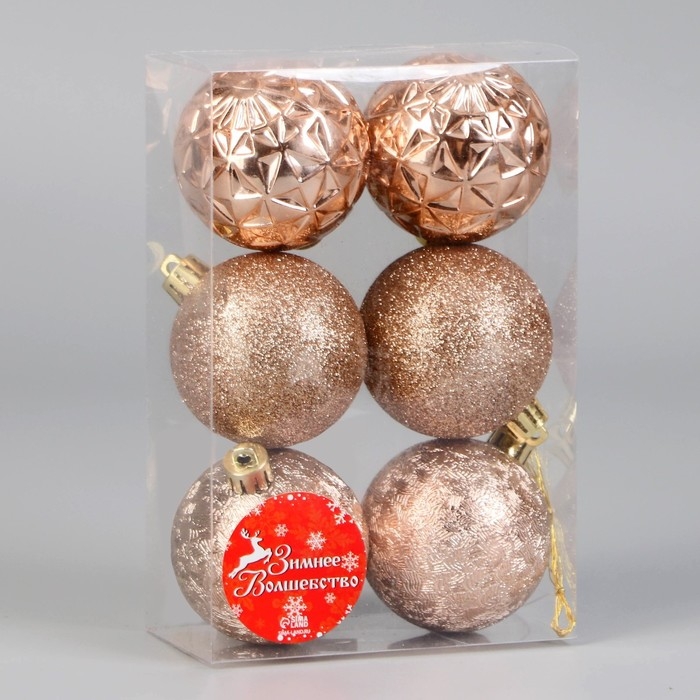 Набор шаров пластик d-6 см, 6 шт "Элит узоры" золото