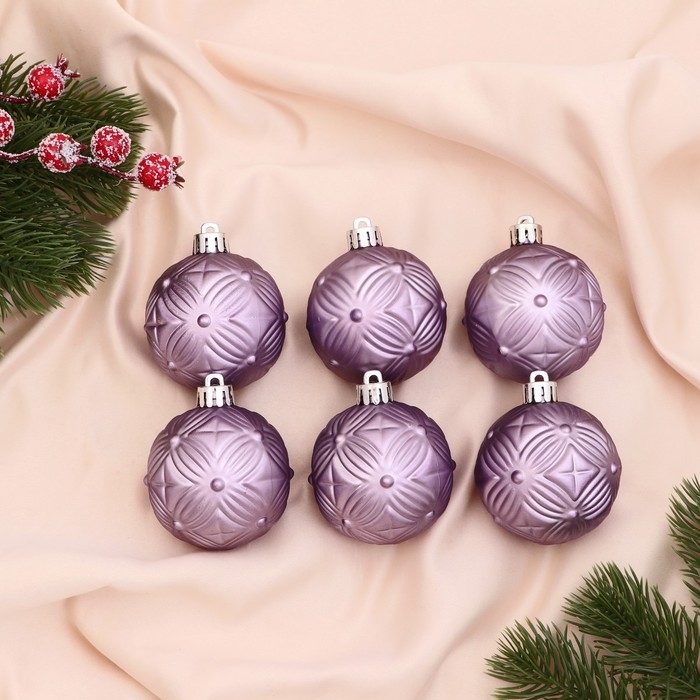 Набор шаров пластик d-6 см, 6 шт "Пальметта" сиреневый
