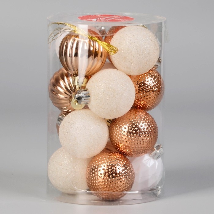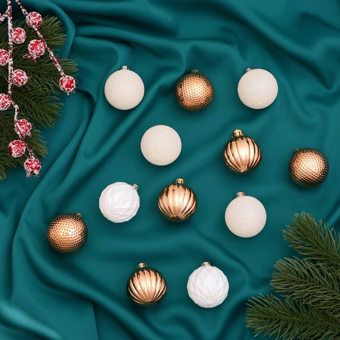 Набор шаров пластик d-4 см, 16 шт "Изабель" узоры, белый золото