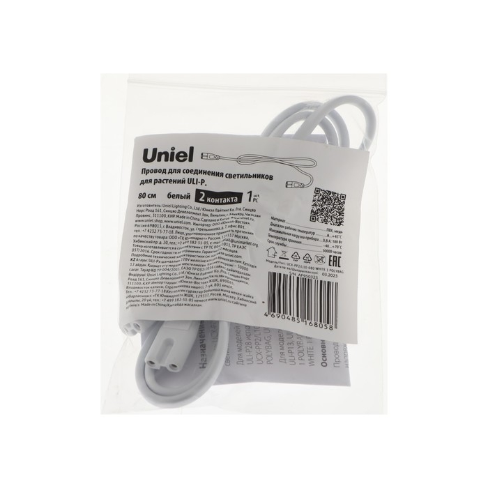 Провод для соединения светильников для растений ULI-P Uniel, 80 см, 2 контакта, белый