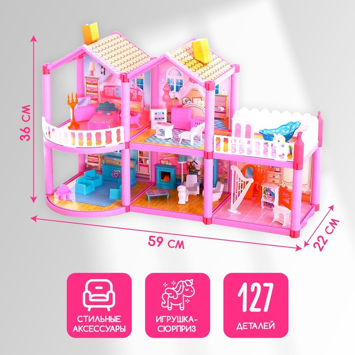 Что может быть лучше кукольного домика для маленькой принцессы? Только 2-этажный коттедж с мебелью и игрушкрй-сюрпризом! С таким набором малышка обустроит уютный уголок и придумает множество увлекательных сюжетно-ролевых игр. Он станет отличным подарком на любой праздник!