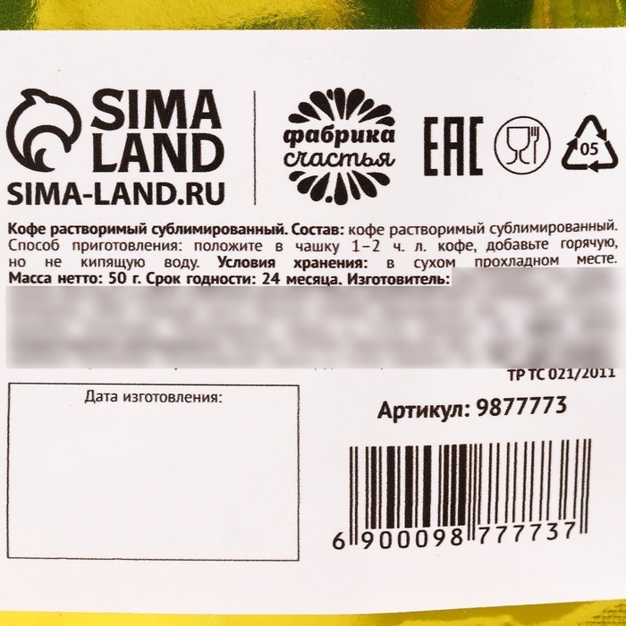Состав: кофе растворимый сублимированный.