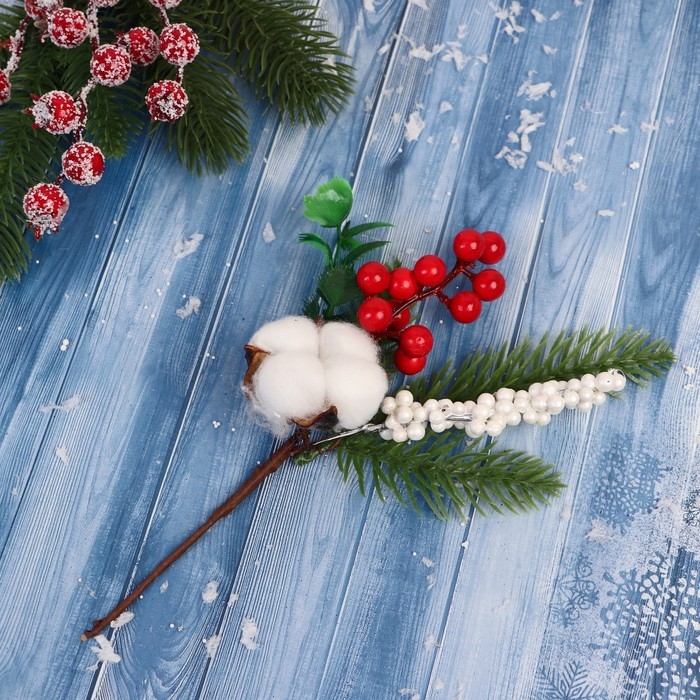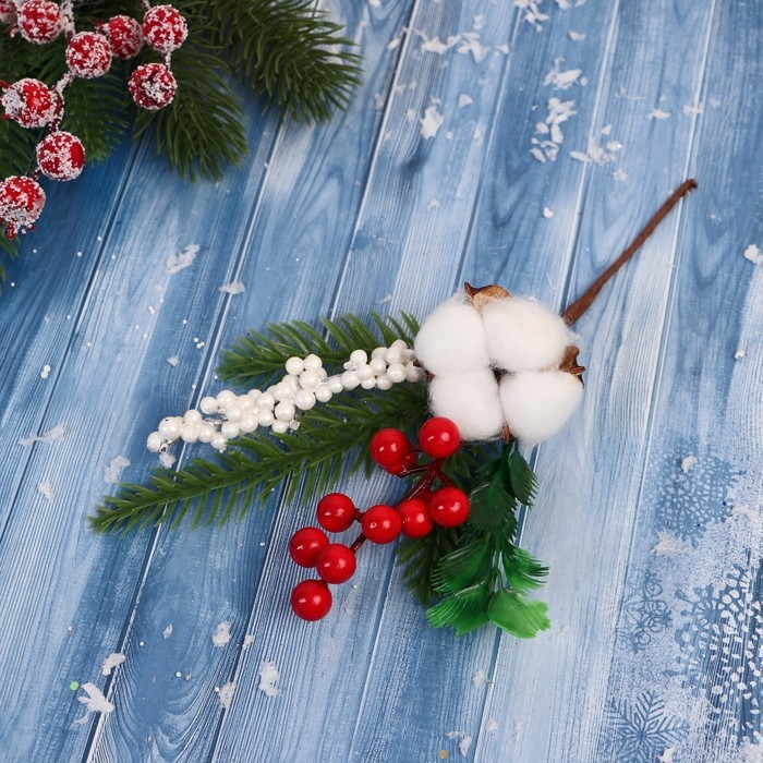 Декор "Зимние грезы" хлопок ягоды еловые веточки, 21 см
