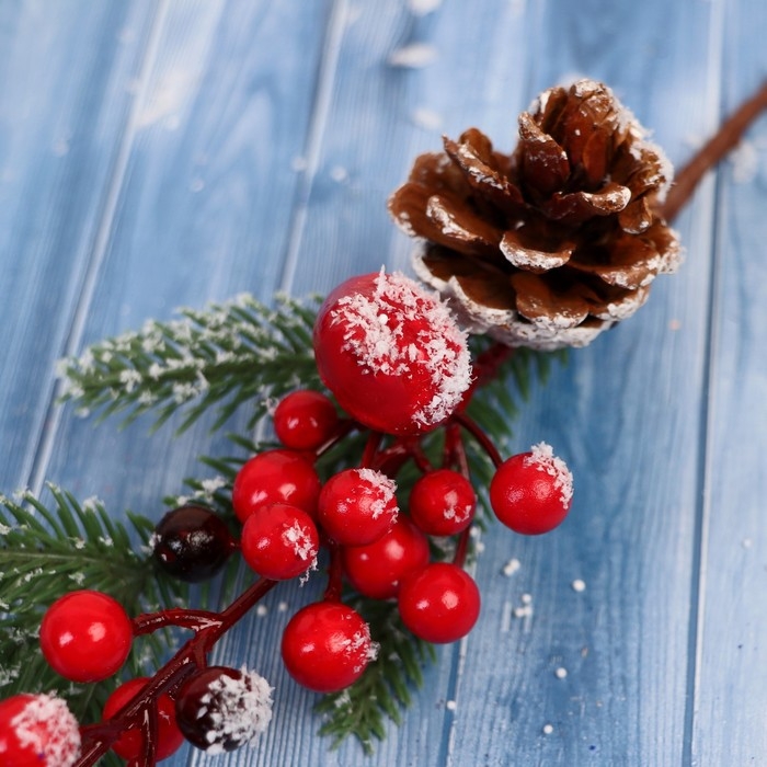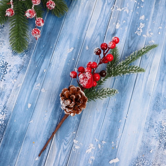 Декор "Зимние грезы" ягоды шишка еловые веточки, 26 см