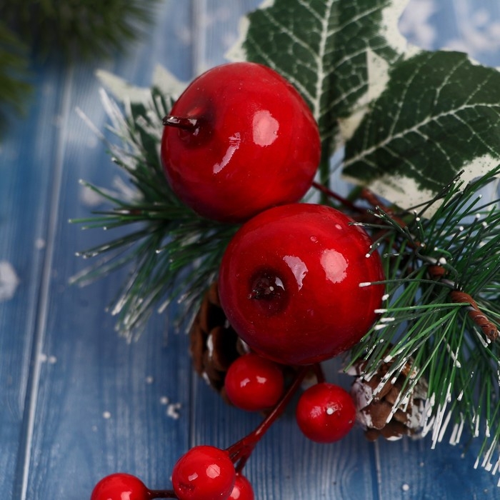 Декор "Зимние грезы" яблоки снежные еловые веточки шишки, 16 см