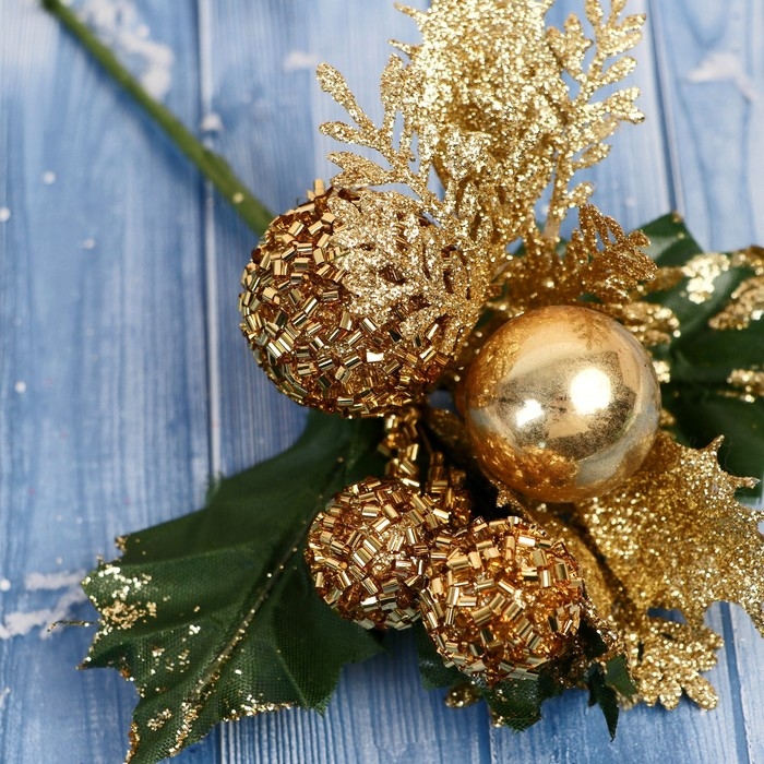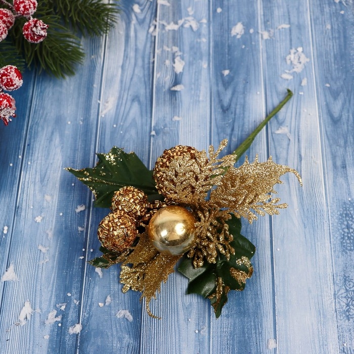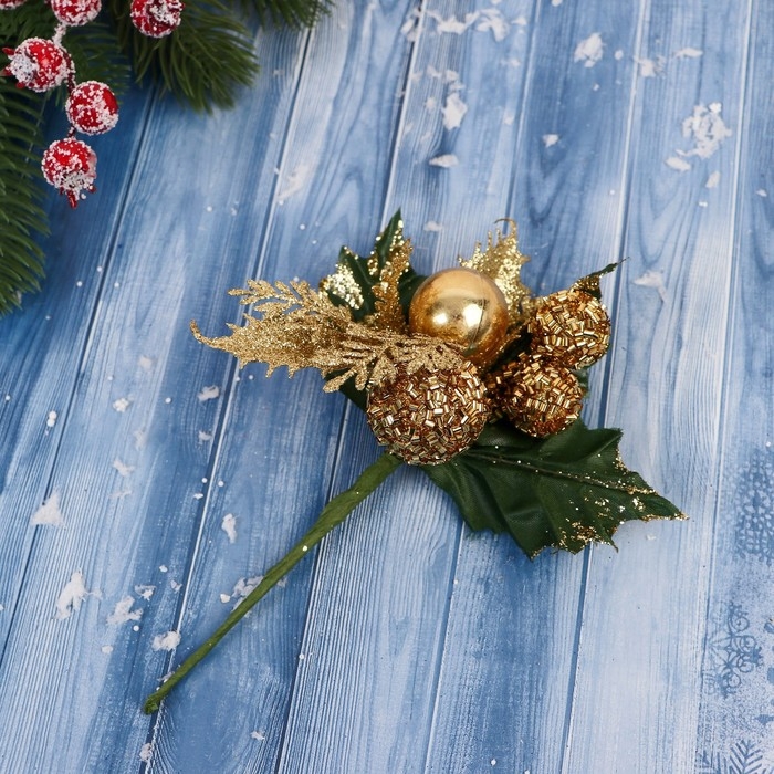 Декор "Зимние грезы" золотые шары листья веточки, 16 см