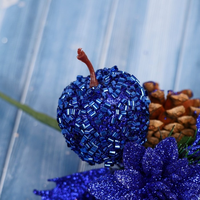 Декор "Зимние грезы" синее яблоко цветок листья веточки, 15 см