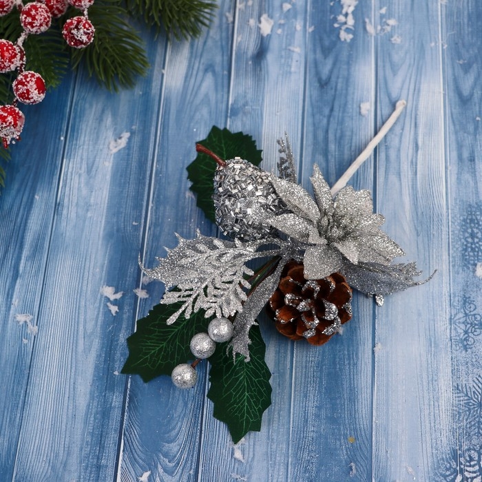 Декор "Зимние грезы" серебряные цветок и листья, 16 см