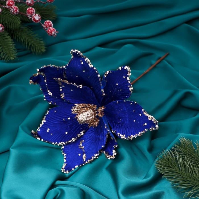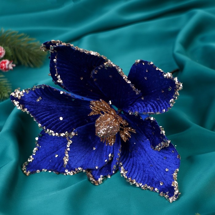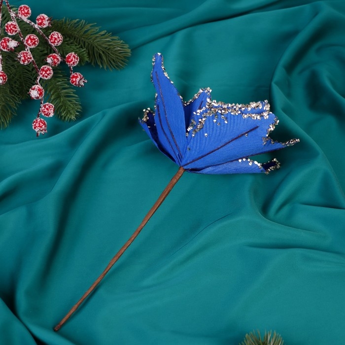 Декор "Зимний цветок" края блеск, 18х20 см, синий