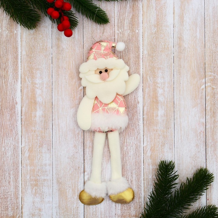 Мягкая подвеска "Дед Мороз в блестящем костюмчике, длинные ножки" 8х27 см, розовый