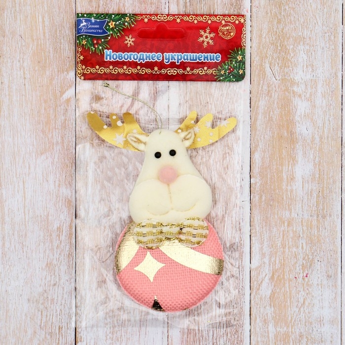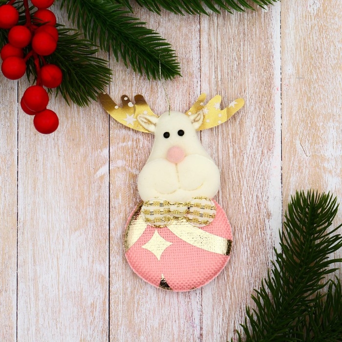 Мягкая подвеска "Олень-кругляш" 5х10 см, розовый