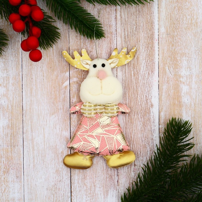 Мягкая подвеска "Олень в костюмчике с геометрическим узором" 6х12 см, розовый
