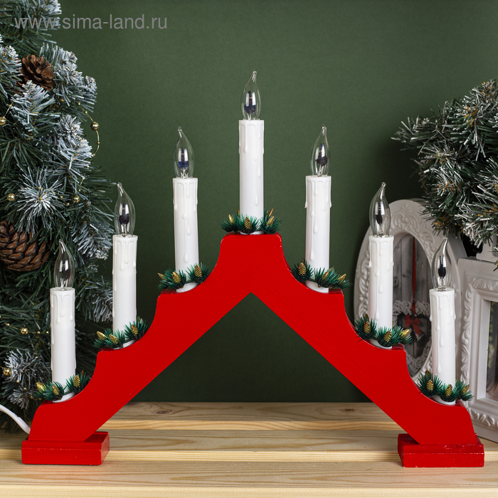 Светодиодная фигура «Красная рождественская горка», пластик, батарейки ААх2 (не в комплекте), свечение тёплое белое