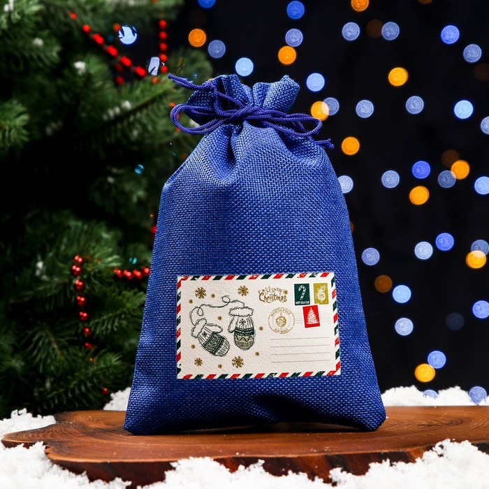 Новый год. Мешок подарочный с термонаклейкой, 16 х 24 см, синий