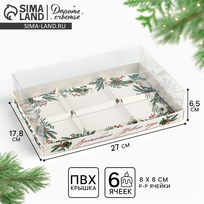 Коробка для для муссовых пирожных «Волшебного Нового года», 27 х 17.8 х 6.5 см, Новый год