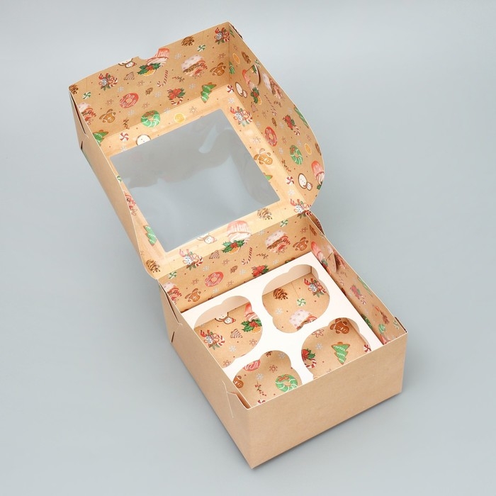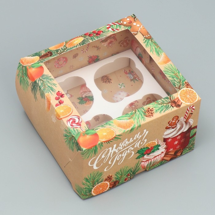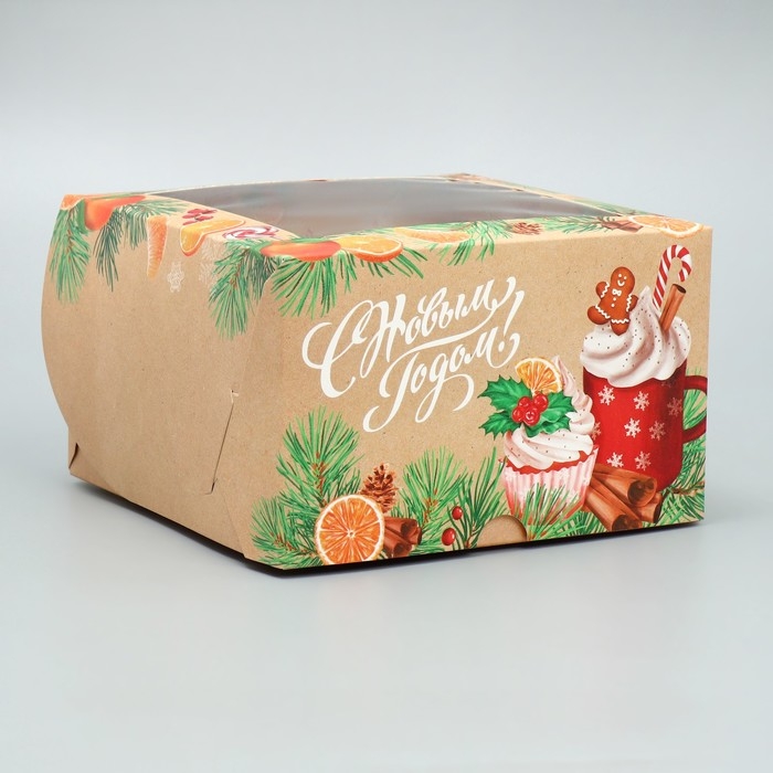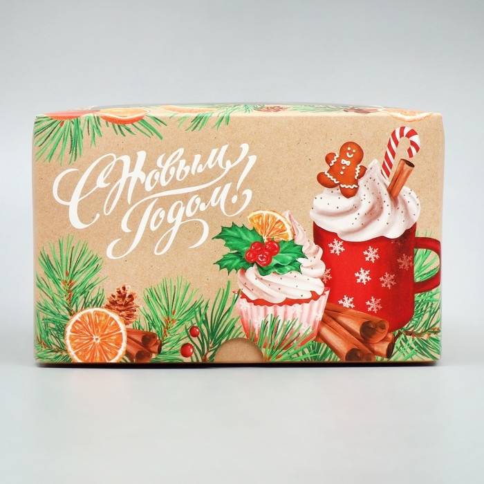 Коробка для капкейков складная с двусторонним нанесением «С Новым годом!», 16 х 16 х 10 см, Новый год