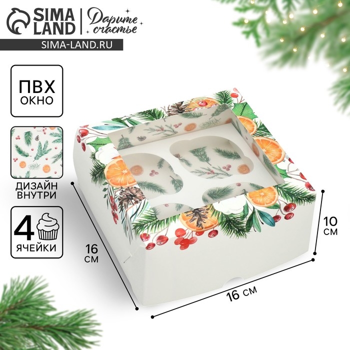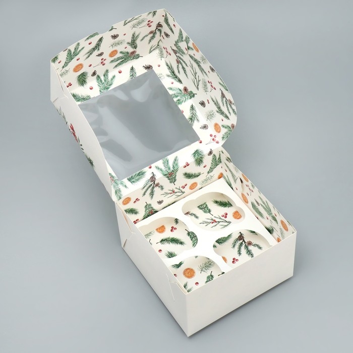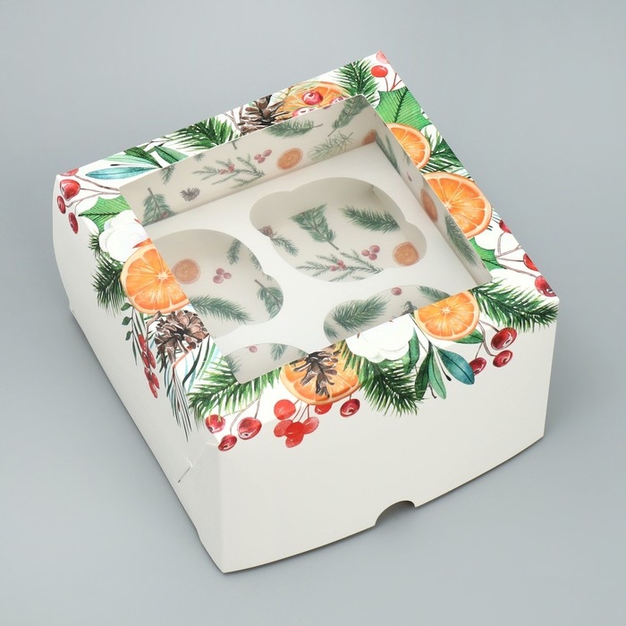 Коробка для капкейка «Тепла и уюта», 16 х 16 х 10 см, Новый год