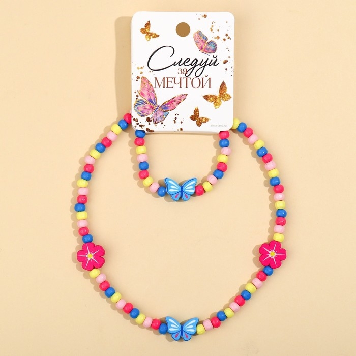 Бижутерия «Следуй за мечтой» набор для девочек: браслет и бусы, 7 х 9 см