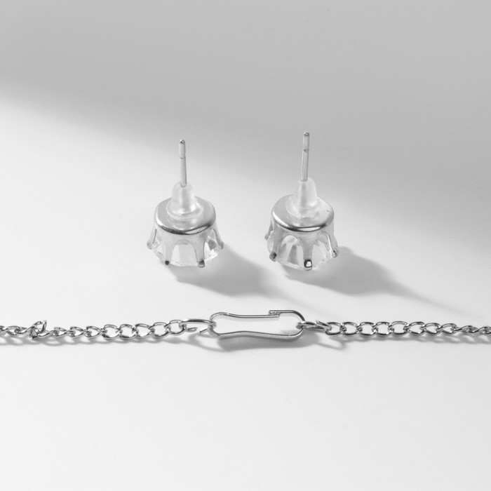 Гарнитур 2 предмета: серьги, кулон «На леске» классика, цвет белый в золоте, 30 см
