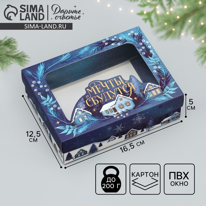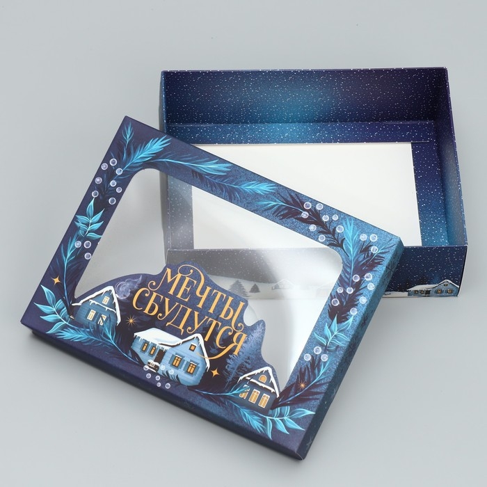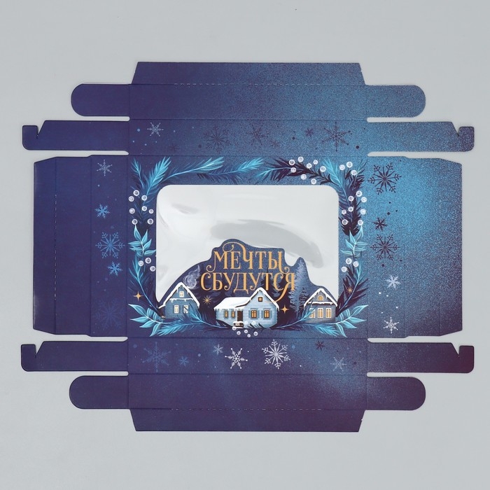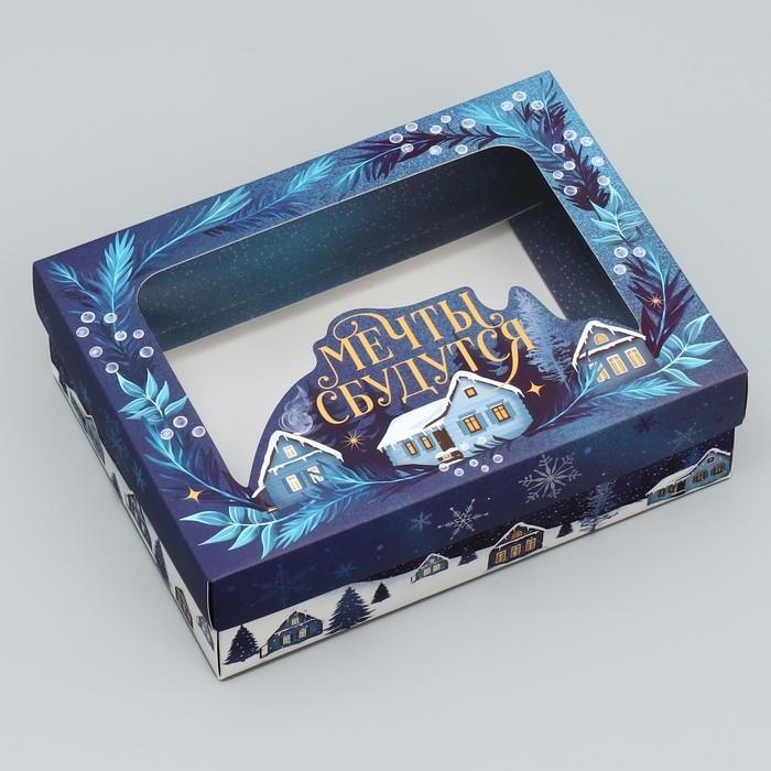Коробка подарочная новогодняя складная «Мечты сбудутся», домик, 16.5 х 12.5 х 5 см, Новый год