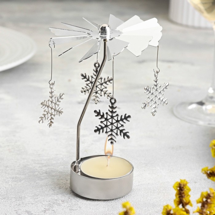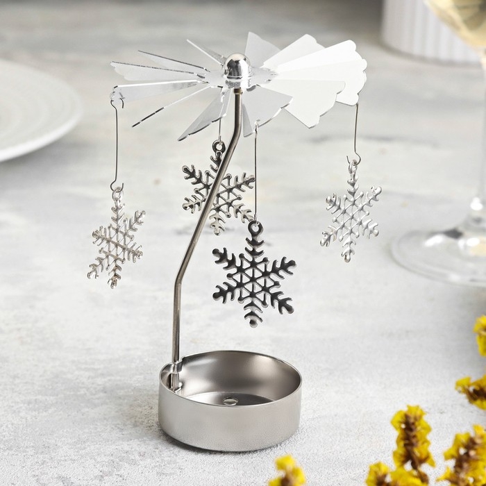 Свеча вращающаяся "Карусель со снежинками", серебрянная, металл