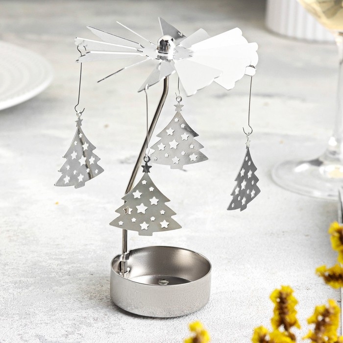 Свеча вращающаяся "Карусель с ёлками", серебрянная, металл