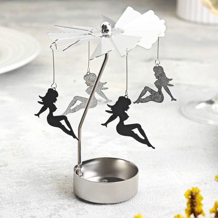 Подсвечник вращающийся "Карусель с феями", серебряная, металл