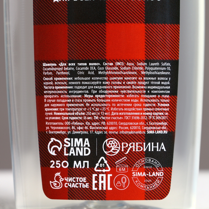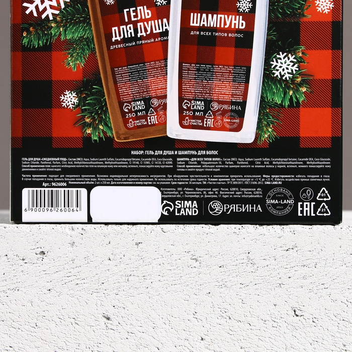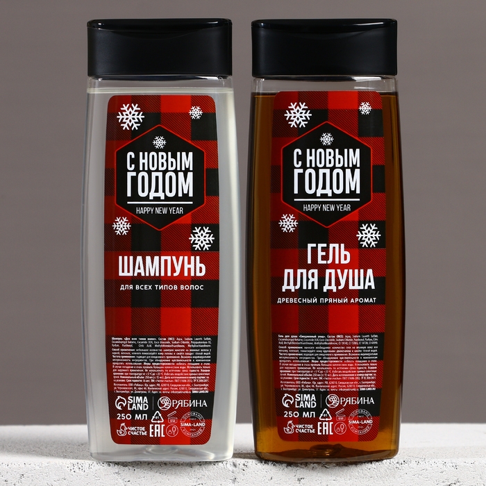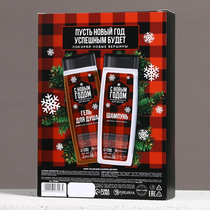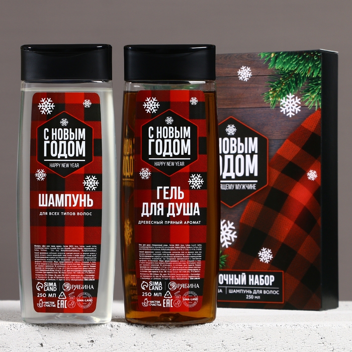 Подарочный набор косметики «Настоящему мужчине в Новый Год», гель для душа и шампунь для волос, 2 х 250 мл, ЧИСТОЕ СЧАСТЬЕ