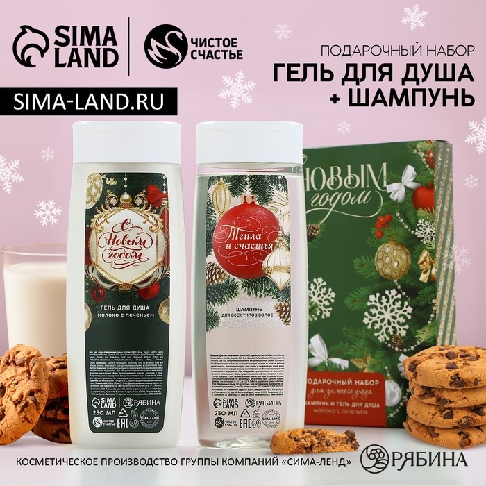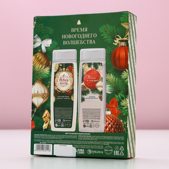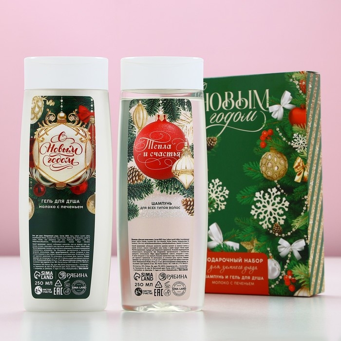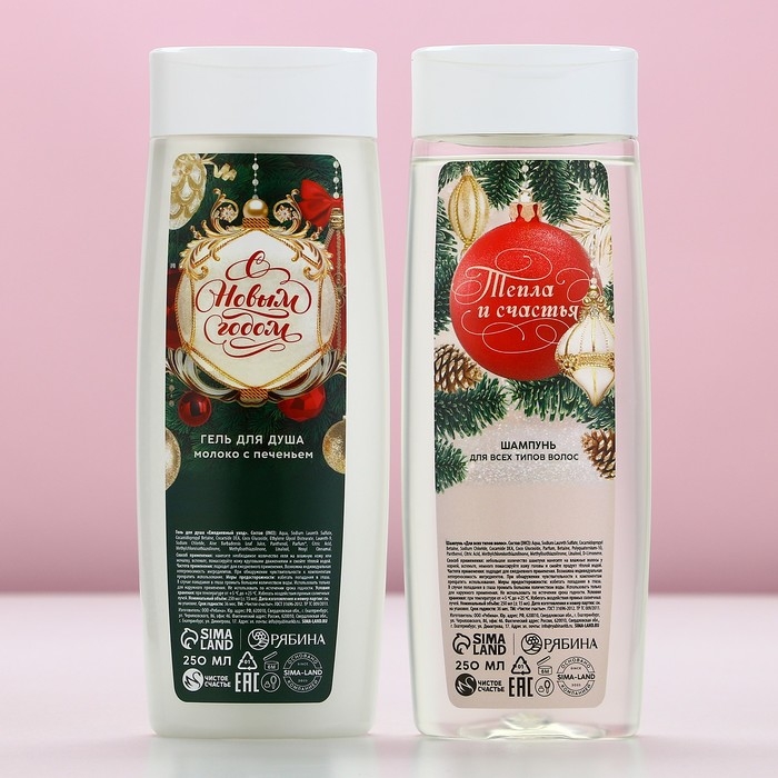 Подарочный набор косметики «С Новым Годом!», гель для душа и шампунь для волос, 2 х 250 мл, ЧИСТОЕ СЧАСТЬЕ