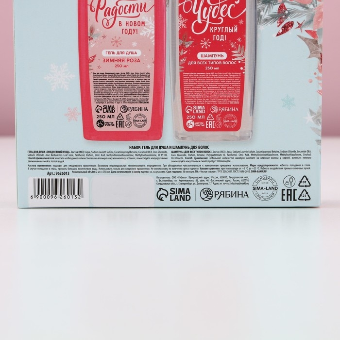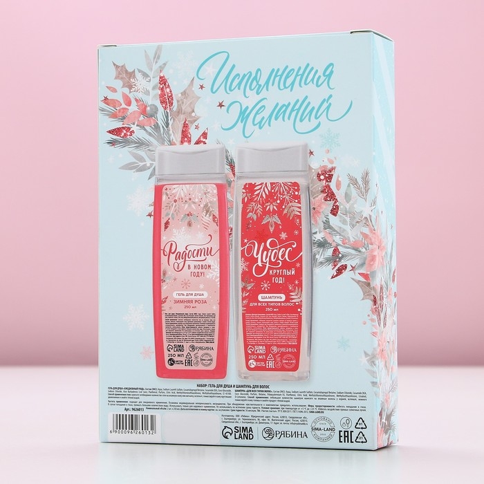 Подарочный набор косметики новогодний «Исполнения желаний!», гель для душа и шампунь для волос, 2 х 250 мл, Новый Год