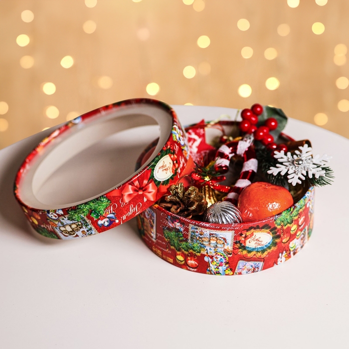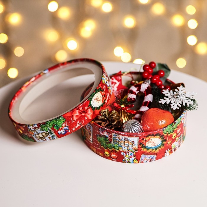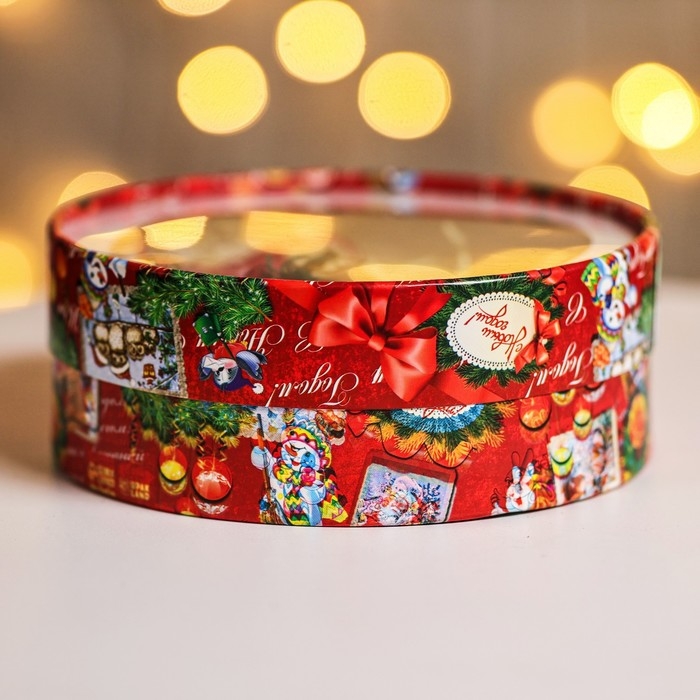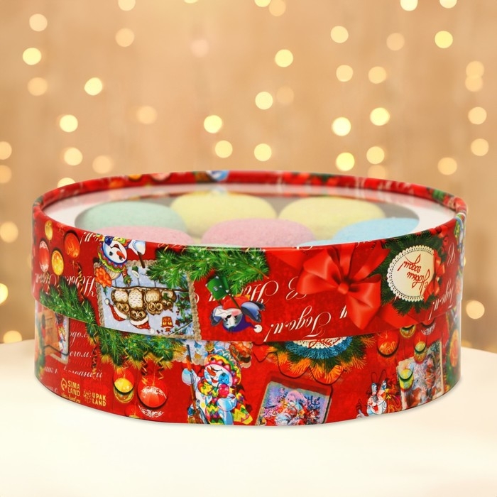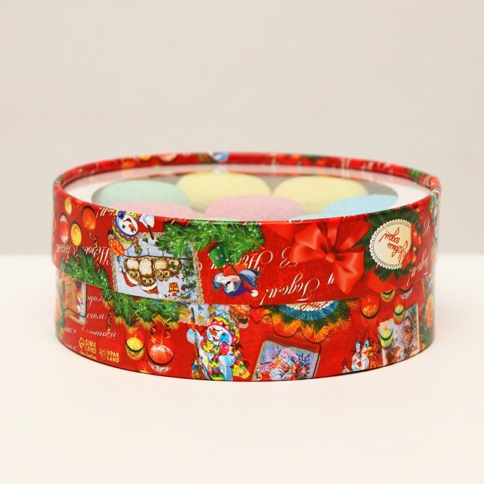 Новый год. Коробка подарочная новогодняя для макарун тубус с окном "Новогодний сюрприз" 18 х 18 х 6 см.