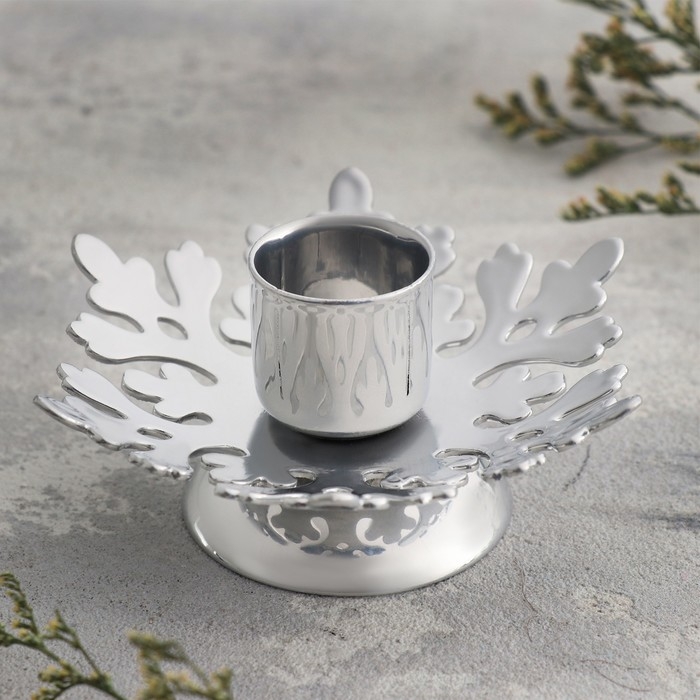 Подсвечник "Изморозь" металл на одну свечу, 9,2х9,2х4,1 см, хром