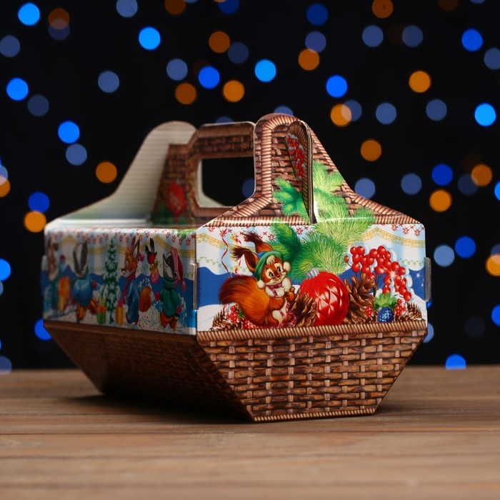 Новый год. Подарочная коробка "Лукошко" 28 x 15,1 x 20,8 см.