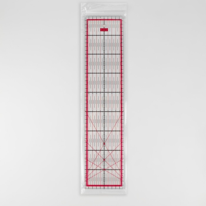 Линейка для квилтинга и пэчворка, 45 × 10 см, толщина 3 мм, цвет прозрачный/розовый