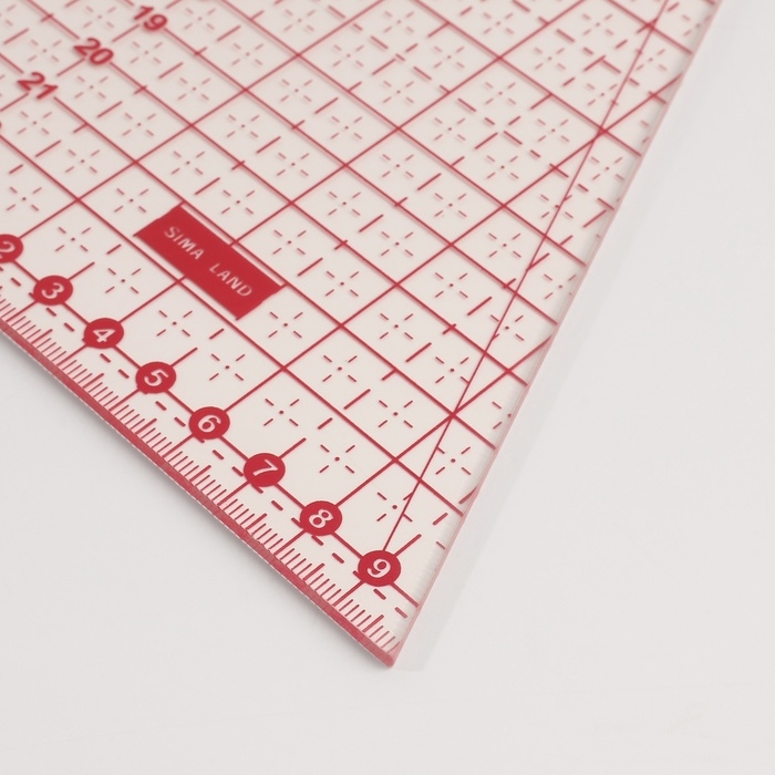 Линейка для пэчворка, 24 × 20 см, толщина 2,5 мм, цвет прозрачный/розовый
