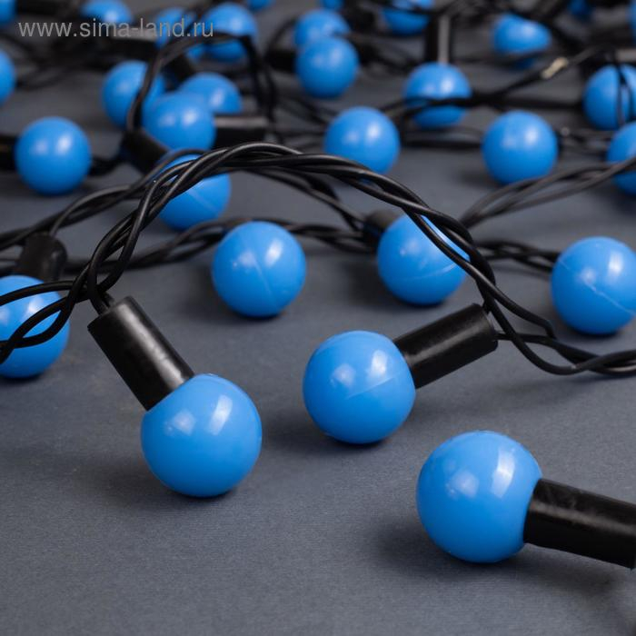 Гирлянда «Нить» 10 м с насадками «Шарики 2.5 см», IP44, тёмная нить, 100 LED, свечение синее, 8 режимов, 220 В