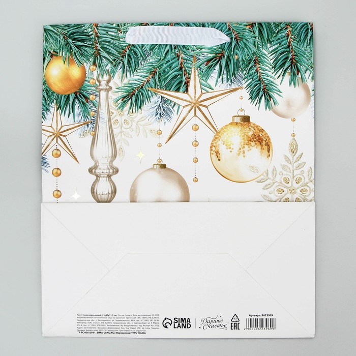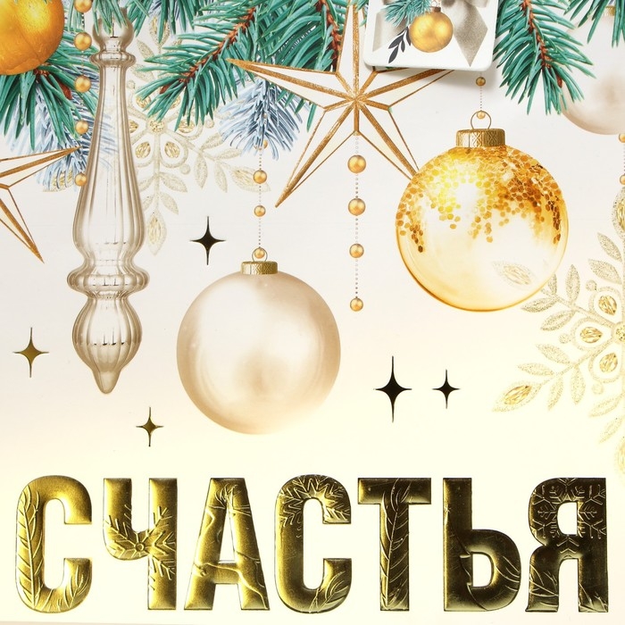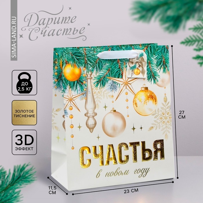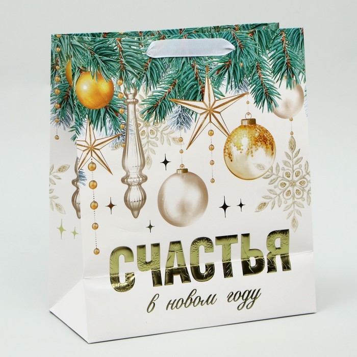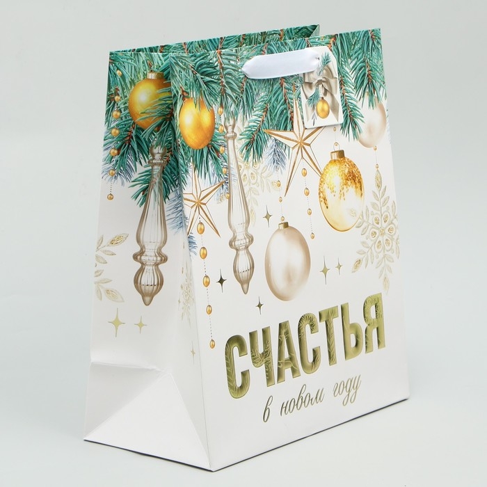 Пакет подарочный новогодний ламинированный вертикальный, конгревное тиснение «Счастья в Новом году», ML 23 х 27 х 11.5 см, Новый год